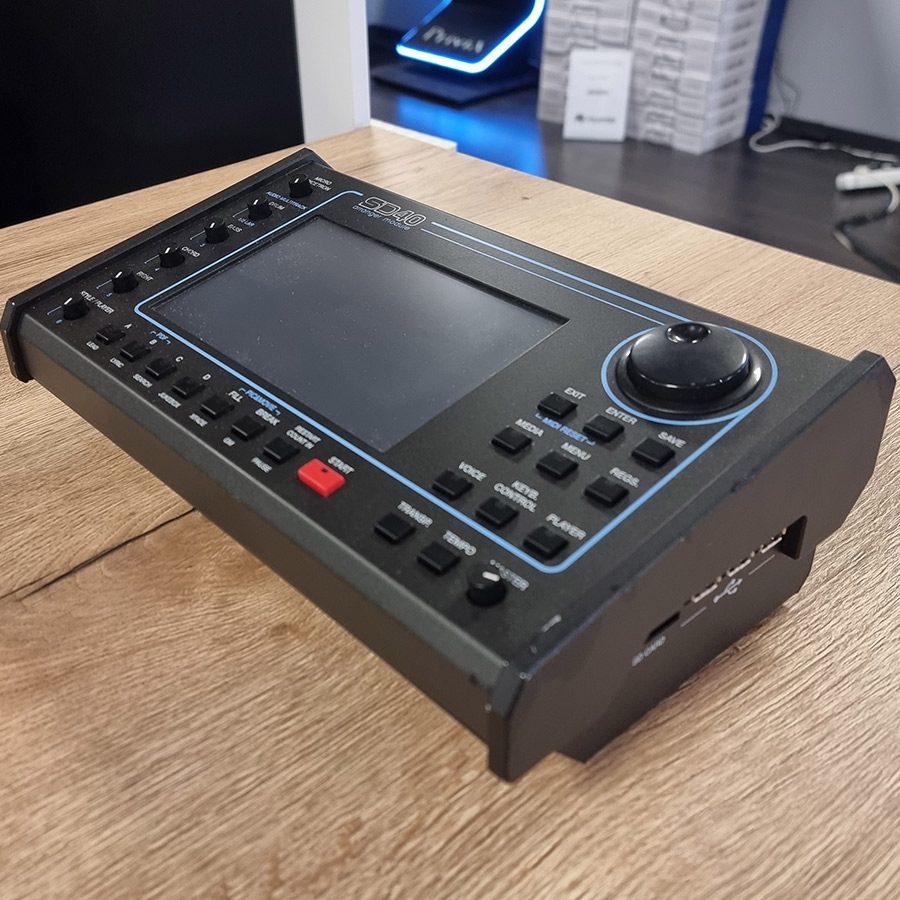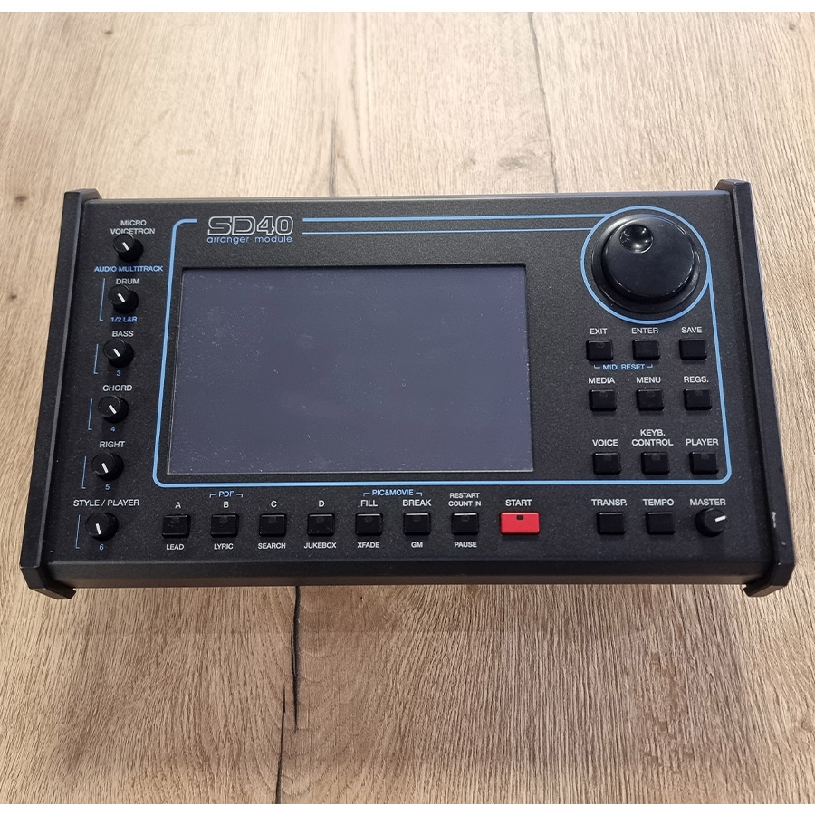 Das Ketron SD40 Keyboardmodul bietet 260 Styles und eine Library mit über 300 Latin Percussion Grooves und 200 Audio Drums. Jeder Style besteht aus 4 Variationen mit 4 Fills, 4 Breaks, 3 Intros und 3 Ends. Außerdem verfügt es über 3 USB-Hosts, 1 USB-Device (zum Anschluss an einen Computer) und einen SD-Kartenanschluss.