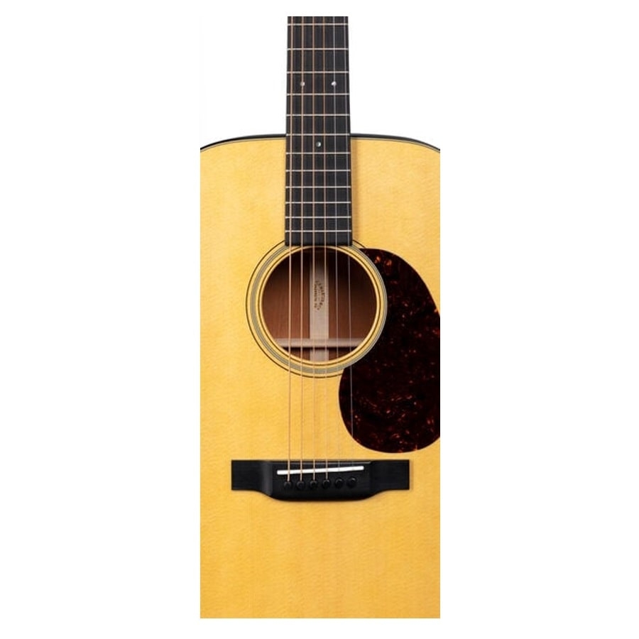 Die 000-18 ist eine Orchestra-Gitarre, also eine sehr vielseitige Gitarrenform. Der Resonanzboden ist eine Kerbe kleiner als bei der beliebten Dreadnought. Obwohl die Orchestra-Gitarre vor allem beim Strumming gut klingt, ist sie durchaus auch als Rhythmusgitarre geeignet. Die 000-18 hat eine Fichtendecke. Fichtenholz hat eine gute Resonanz und erzeugt einen schönen warmen Klang. Der Boden und die Zargen sind aus Mahagoni gefertigt. Mahagoni hat eine schöne dunkle Farbe und erzeugt einen warmen und kräftigen Sound. Der Hals ist aus „Select Hardwood“ gefertigt, d. h. er besteht aus Zeder oder Mahagoni, je nachdem, welche Holzart Martin ohne Beteiligung an der Abholzung beziehen kann. Beide Hölzer eignen sich gut als Hälse, und der Unterschied zwischen den beiden ist minimal. Das Griffbrett ist aus Ebenholz gefertigt, das eine gute Spielfläche bietet. Kurzum, eine schöne Gitarre, ästhetisch und musikalisch!