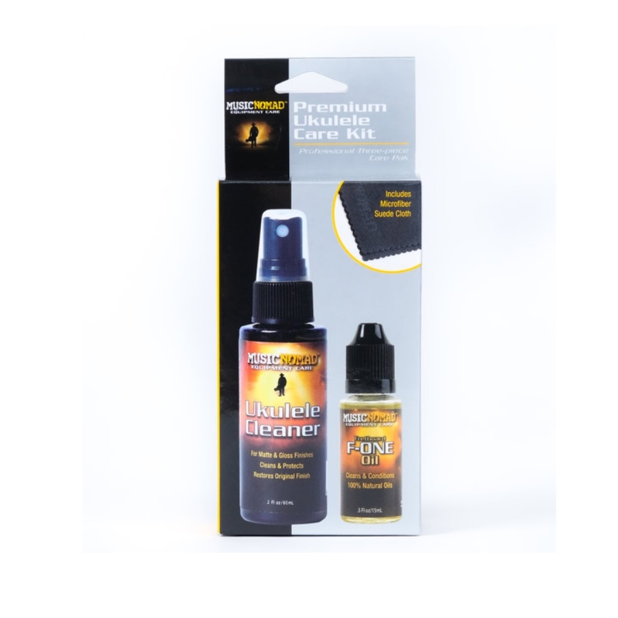 Dieses Premium Ukulele Care Kit von Music Nomad enthält die beliebtesten Artikel für die Pflege von Ukulelen. Der Ukulelenreiniger (2 oz. Flasche) ist ein perfekter Reiniger für matte und glänzende Oberflächen. Er ist ideal für den Korpus, die Rückseite des Halses und die fertigen Griffbretter. Die streifenfreie, geschützte Formel enthält sogar UV-Schutzmittel und riecht hervorragend. Das 100 % natürliche Fretboard F-One Oil (0,5 oz.) reinigt, pflegt, restauriert und schützt Ihr unbehandeltes Palisander-, Ebenholz oder exotische Hölzer und enthält kein Zitronenöl, Petroleum, Wachs oder Wasser. Ebenfalls enthalten ist ein großes, 12 x 12 Zoll großes Premium suede Mikrofasertuch, das zusammen mit diesen Produkten oder allein zur Reinigung von Fingerabdrücken, Schweiß, Staub und Schmutz verwendet werden kann.