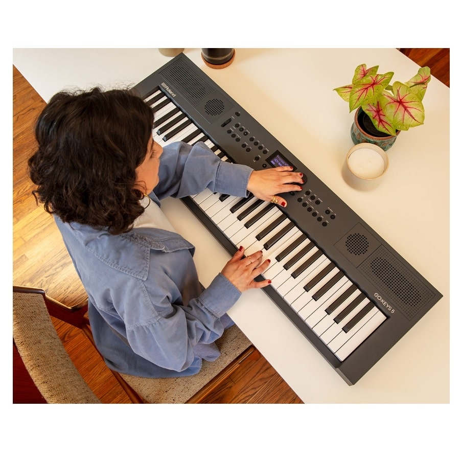Das System wird über das mitgelieferte Netzteil betrieben, kann aber auch mit acht AA-Batterien verwendet werden. Möchten Sie gerne zu Ihrer Lieblingsmusik spielen? Kein Problem! Das System verfügt über eine Bluetooth-Funktion, mit der Sie Ihr Smartphone oder Ihren Laptop anschließen können. Darüber hinaus kann das GO:KEYS 5 auch als MIDI-Keyboard über den MIDI-Anschluss verwendet werden. Zusätzlich können Sie ein Pedal und ein Mikrofon an das Keyboard anschließen. Das Keyboard bietet außerdem integrierte Stimmeffekte. Eine besonders wichtige Funktion des GO:KEYS 5 ist die Nutzung als USB-Interface, wodurch Sie es direkt an Ihre Aufnahme-Software anschließen und Ihr Spiel aufnehmen können. Möchten Sie die Klangmöglichkeiten erweitern? Kein Problem! Mit dem separat erhältlichen WC-1 Adapter erhalten Sie Zugriff auf Roland Cloud Connect.