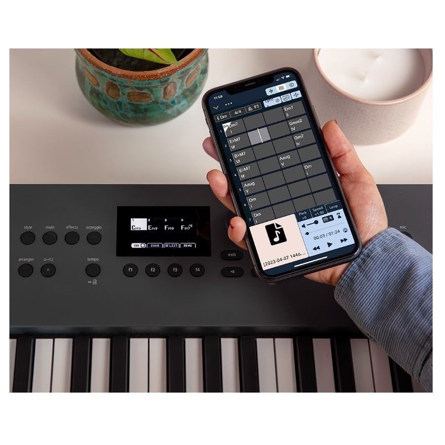 Das GO:KEYS 5 verfügt über eine ZEN-Core-Engine, die mehr als 1.000 Sounds aus verschiedenen Genres und Epochen enthält. Möchten Sie Begleitung beim Spielen? Kein Problem! Das System bietet eine automatische Begleitfunktion, mit der Sie mühelos weiterspielen können. Sie müssen sich auch keine Sorgen machen, ob die Begleitung zu Ihnen passt, denn das System enthält mehr als 200 verschiedene integrierte Musikstile. Wenn Sie nur einzelne Rhythmen hinzufügen möchten, ist auch das möglich, denn das System verfügt über 74 integrierte Drum-Kits. Darüber hinaus besitzt das GO:KEYS 5 einen eingebauten Akkord-Sequenzer mit mehr als 500 Presets, der das Erstellen eigener Musik erheblich erleichtert. Außerdem können Sie das Keyboard mit Kopfhörern verwenden, aber auch das Spielen über Lautsprecher ist eine großartige Option. Das System verfügt nämlich über zwei Stereo-Lautsprecher und zwei passive Radiatoren, wodurch der Sound so klar und authentisch wie möglich wiedergegeben wird.