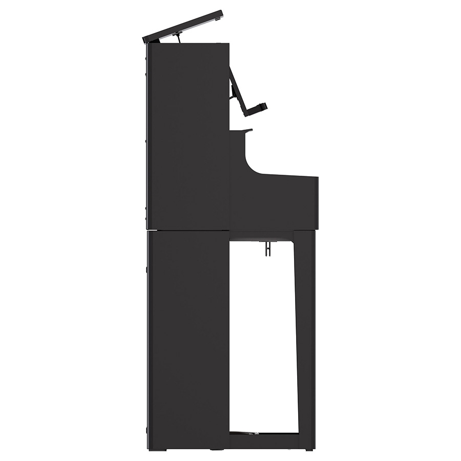 Auf den ersten Blick hat das Roland LX-9 ein erkennbares Design, das wir schon oft von der japanischen Marke gesehen haben. Traditionell bei den Rolands hat das LX-9 ein schönes, hohes Gehäuse, das nicht weniger als 118 cm hoch ist. Der Deckel an der Oberseite kann geöffnet werden, und der Tastaturdeckel lässt sich an der Außenseite öffnen und schließen. Damit ist es eines der wenigen Digitalpianos, das in Größe und Spielgefühl einem echten Upright sehr nahe kommt! Doch wenn man sich die Details ansieht, hat sich eine Menge geändert. Zum Beispiel hat das LX-9 schärfere Linien erhalten, die ihm ein moderneres und frischeres Aussehen verleihen. Außerdem sind die Tasten jetzt unter dem Lack eingearbeitet und leuchten nur auf, wenn man das Piano bedienen will. Dadurch wirkt das Piano noch echter und lenkt beim Spielen weniger ab. Kurzum: Das LX-9 kann man definitiv als modern und realistisch bezeichnen!