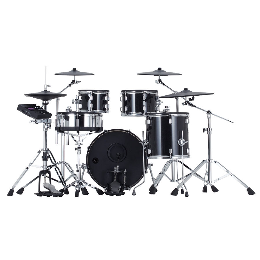 Roland ist seit Jahrzehnten Marktführer bei E-Drumsets - und das aus gutem Grund. Ihre Technologie und Benutzerfreundlichkeit machen sie zu einer der besten Entscheidungen für Anfänger und Profis. Trotz des Komforts eines E-Drumsets wurde lange Zeit das Aussehen des Instruments kritisiert. Aus diesem Grund hat Roland die neue VAD Serie entwickelt. Der größte Unterschied zur ursprünglichen TD-Serie ist natürlich das Aussehen. Die 14„ Edelstahl-Snare, das 14“ Floortom, die 20„ Kick sowie die 10“ und 12" Racktoms sehen alle sehr realistisch aus. Dank der speziellen Roland Mesh-Heads, die sich bis ins kleinste Detail an den eigenen Spielstil anpassen lassen, spielen sie sich auch sehr realistisch.