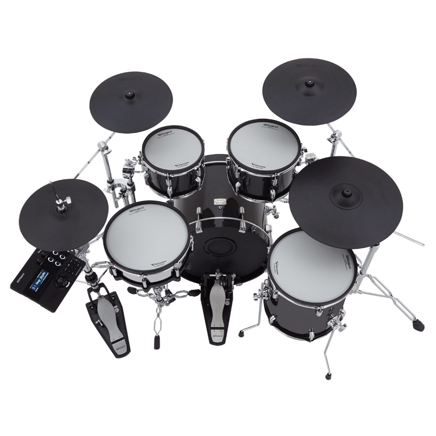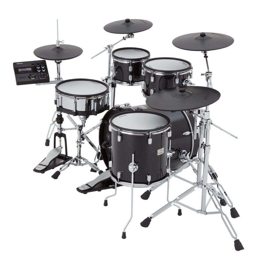 Die Drums des VAD507 bestehen aus Holzkesseln, verchromter Hardware und die Felle aus doppellagigem Mesh. Die verchromten Ständer sind ebenfalls doppelt verstärkt. Die Drums verfügen zudem über eine hochwertige Sensortechnik, die dafür sorgt, dass jeder Anschlag perfekt eingefangen wird, egal wie stark und wo er angeschlagen wird. Unterstützt wird dies durch die Dual Zone Pads, die über unabhängige Fell- und Randtrigger verfügen.