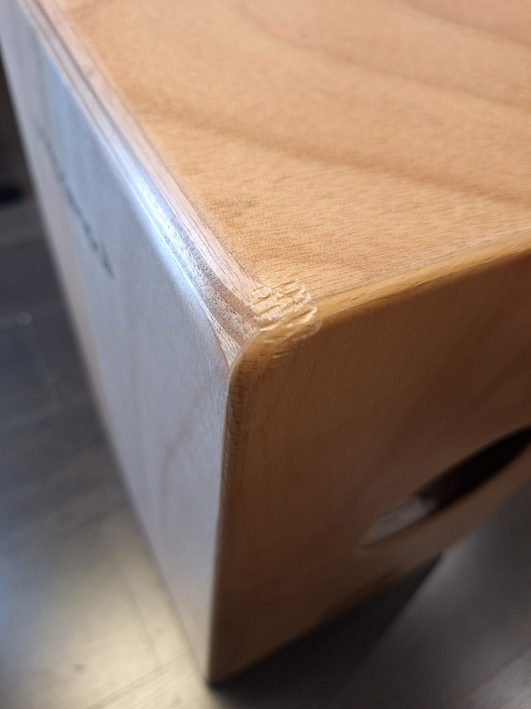 Das Schlagwerk CP4011 Zebrano ist ein B-Stock-Modell und weist eine kleine Beschädigung an einer der Ecken auf (siehe Foto).