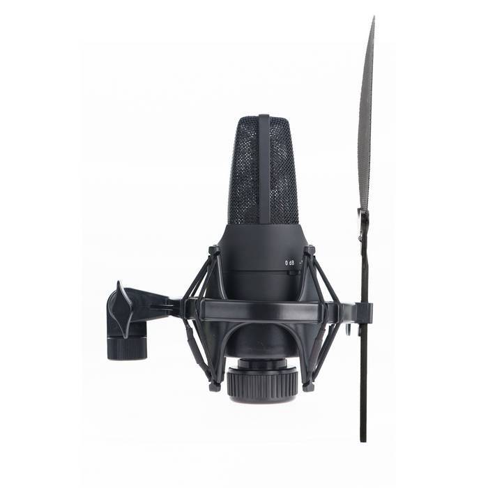 In den Shockmount ist ein professioneller Poppfilter integriert. Dieser Pop-Filter verhindert Signalspitzen, die durch Wörter mit den kräftigen P's und B's entstehen. Dieser Filter sorgt dafür, dass diese Signale herausgefiltert werden.