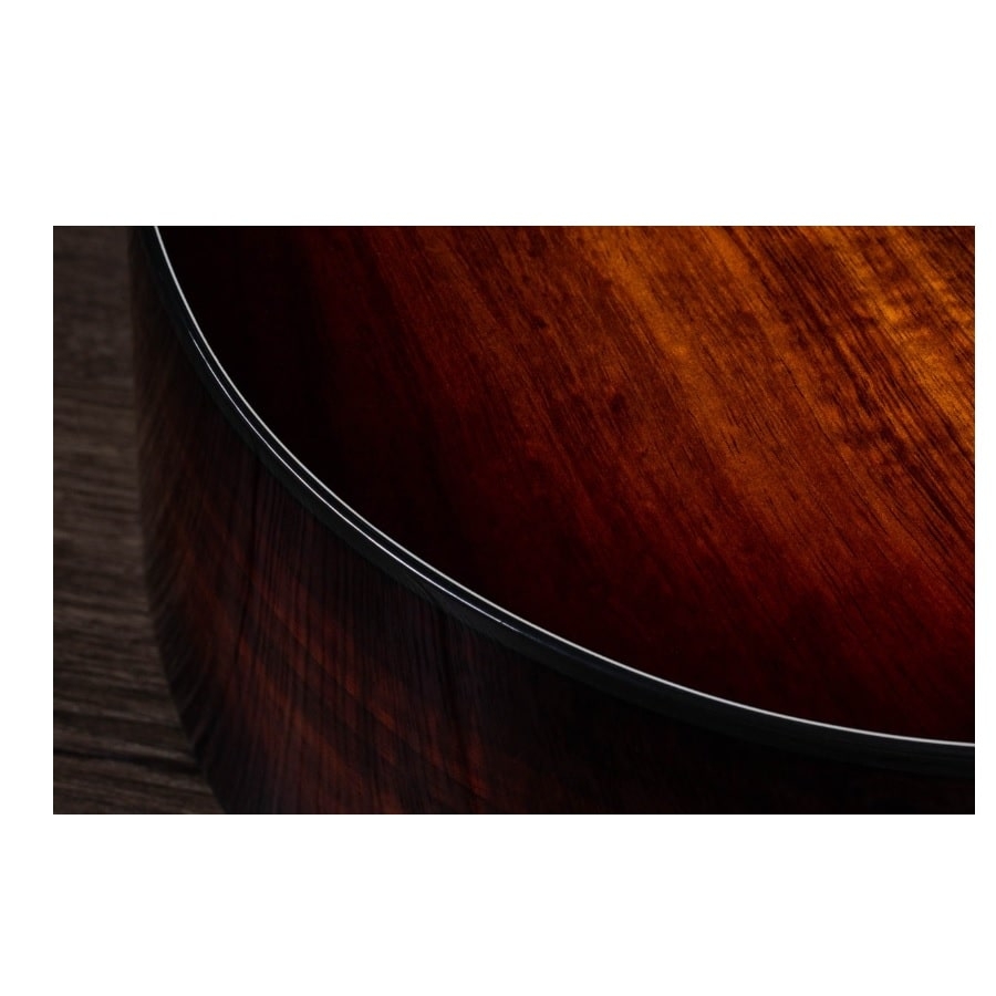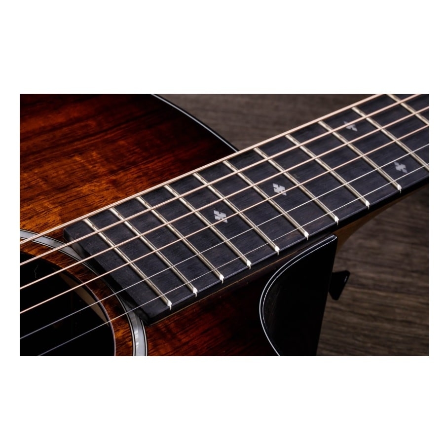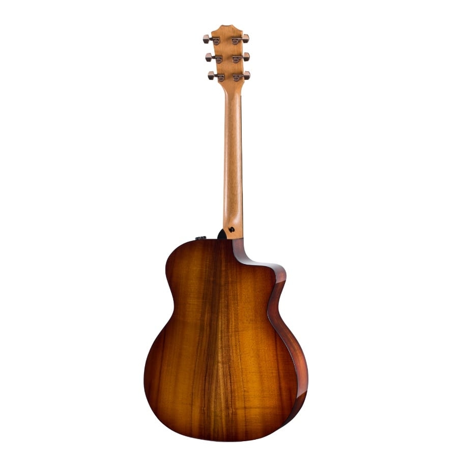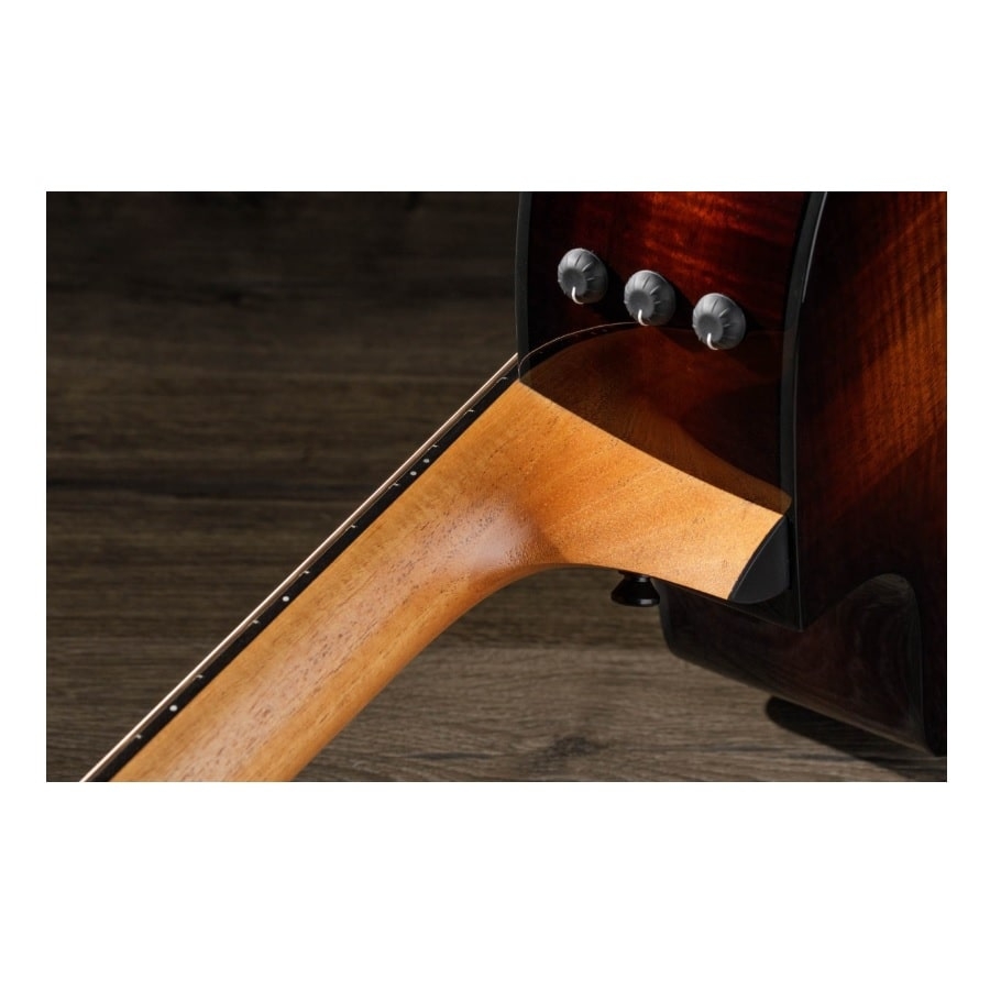 Die 224ce-K DLX ist eine einzigartige Gitarre. Ihr Resonanzboden besteht aus massiver Koa-Decke, -Zarge und -Boden. Dies sorgt für einen klaren und kraftvollen Sound. Koa ist ein hawaiianisches Holz, das für einen schönen Sound sorgt, der mit der Zeit noch schöner wird. Das bedeutet, dass die Gitarre mit Ihnen altert. Sie hat einen Mahagoni-Hals und ein Griffbrett aus Ebenholz. Sie hat einen Grand-Auditorium-Korpus. Diese Form wurde 1994 bei Taylor entwickelt und ist eine der beliebtesten. Die Grand Auditorium ist etwas kleiner als eine Dreadnought, aber etwas größer als eine Grand Concert. Sie ist die vielseitigste der drei Gitarren, denn Dreadnoughts eignen sich vor allem für Rhythmusgitarre und Grand Concerts zum Strumming. Die Grand Auditorium hingegen ist speziell für die Kombination aus beiden Instrumenten konzipiert. Außerdem ist die Gitarre mit einer ES2-Elektronik ausgestattet, sodass sie sich gut verstärken lässt, und sie wird mit einem Koffer geliefert.