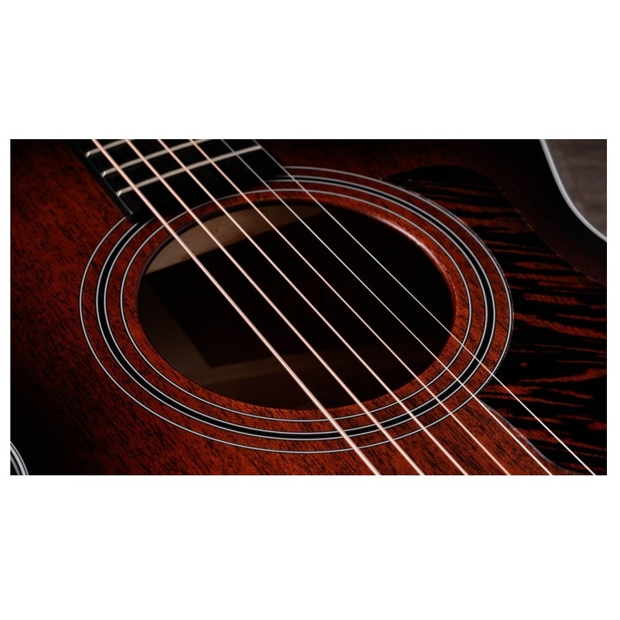 Die 322ce ist eine großartige Gitarre. Sie hat eine massive Mahagonidecke sowie Zargen und Boden aus Mahagoni. Dies sorgt für einen artikulierten und klaren Sound. Der Hals der Gitarre ist aus Mahagoni gefertigt und das Griffbrett aus Ebenholz. Sie hat einen Grand-Concert-Korpus. Diese komfortable Form ist etwas kleiner als die beliebte Dreadnought. Der etwas kürzere Hals eignet sich besser für kleinere oder jüngere Spieler. Die Gitarre ist somit sowohl für die Bühne als auch für das Studio geeignet. Die Form sorgt außerdem dafür, dass der Sound der Gitarre schön ausgewogen ist. Die Gitarre ist mit einer ES2-Elektronik ausgestattet, sodass sie gut verstärkt werden kann. Im Lieferumfang ist auch ein Koffer enthalten.