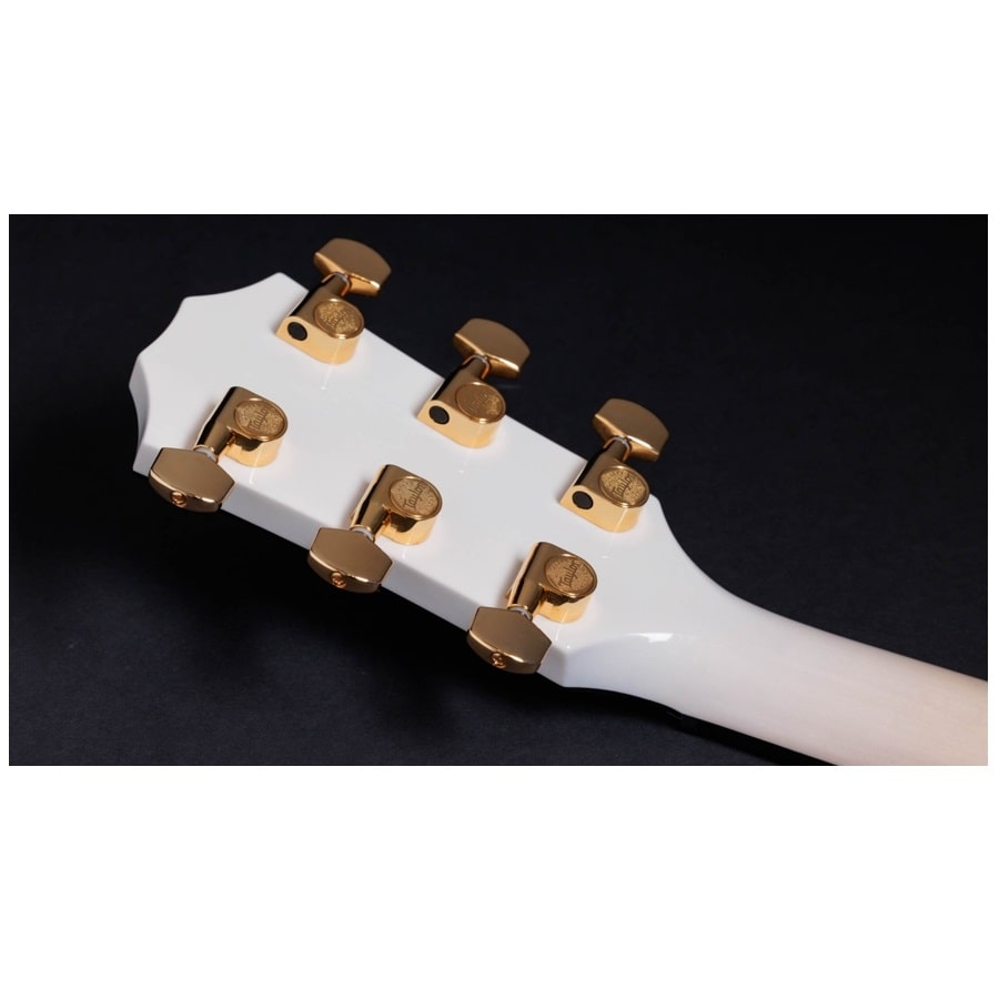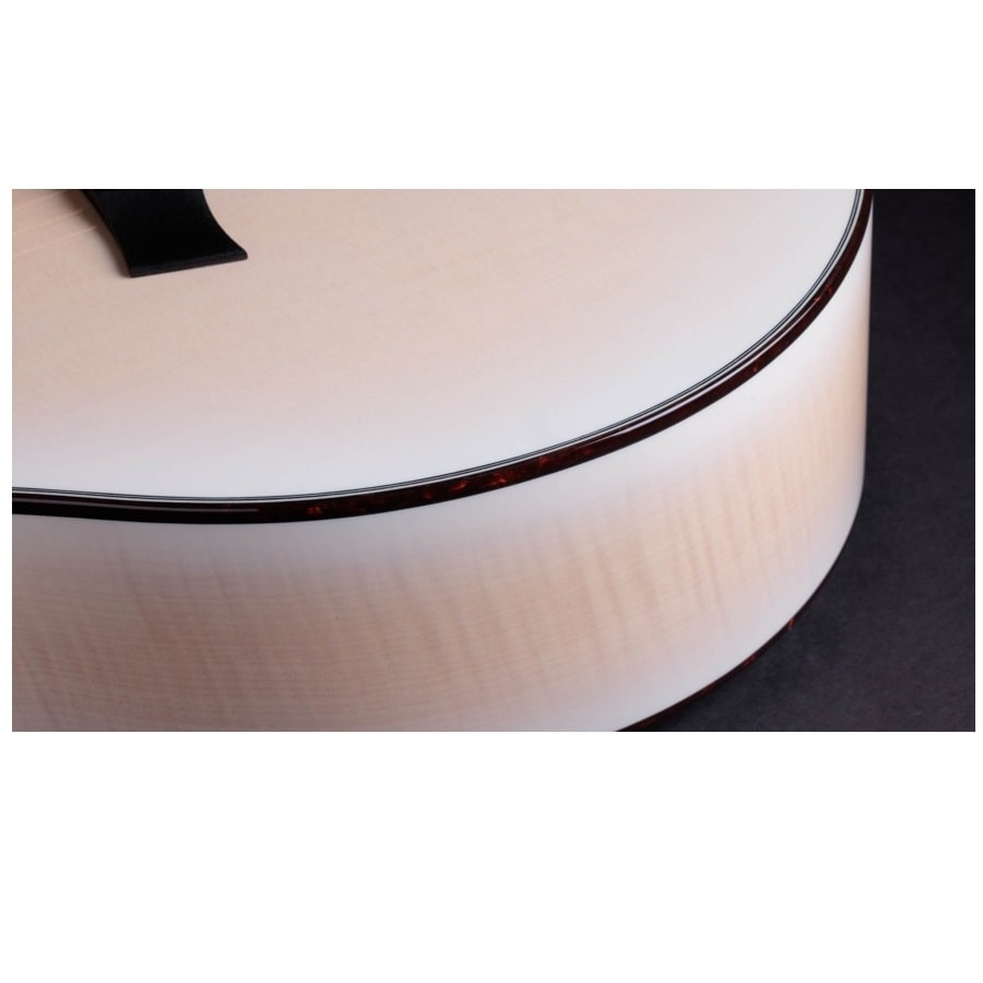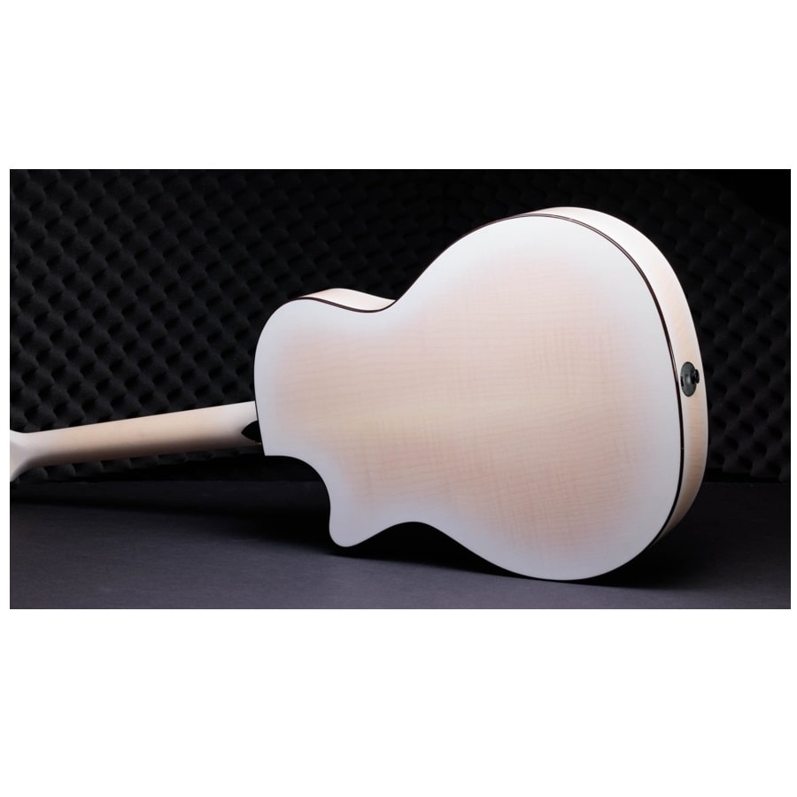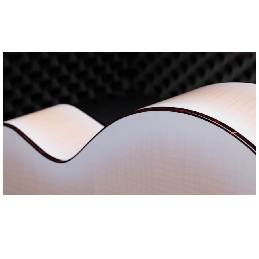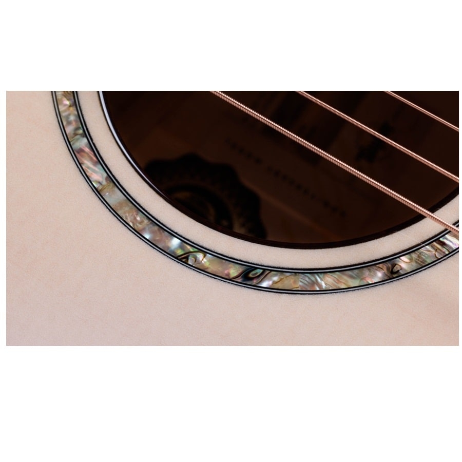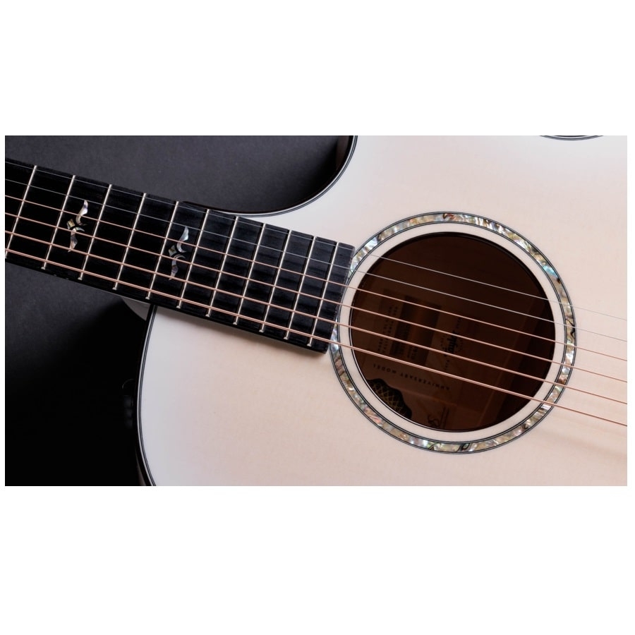 Die 614ce ist nicht nur eine großartige Gitarre, sondern auch das Ergebnis des 50-jährigen Firmenjubiläums von Taylor. Sie hat einen Ahornhals und ein Griffbrett aus Ebenholz. Dies sorgt für ein feines und komfortables Spielgefühl. Sie hat einen Grand-Auditorium-Korpus. Diese Form wurde 1994 von Taylor entworfen und ist eine der beliebtesten. Der Grand Auditorium ist etwas kleiner als eine Dreadnought, aber etwas größer als ein Grand Concert. Sie ist die vielseitigste der drei Gitarren, denn Dreadnoughts eignen sich vor allem für Rhythmusgitarre und Grand Concerts für Strumming. Die Grand Auditorium hingegen ist speziell für die Kombination aus beiden Instrumenten konzipiert. Außerdem ist die Gitarre mit einer ES2-Elektronik ausgestattet, sodass sie sich gut verstärken lässt, und sie wird mit einem Koffer geliefert.