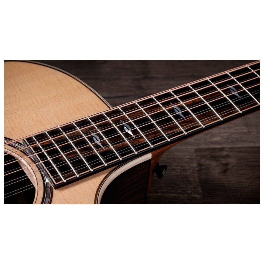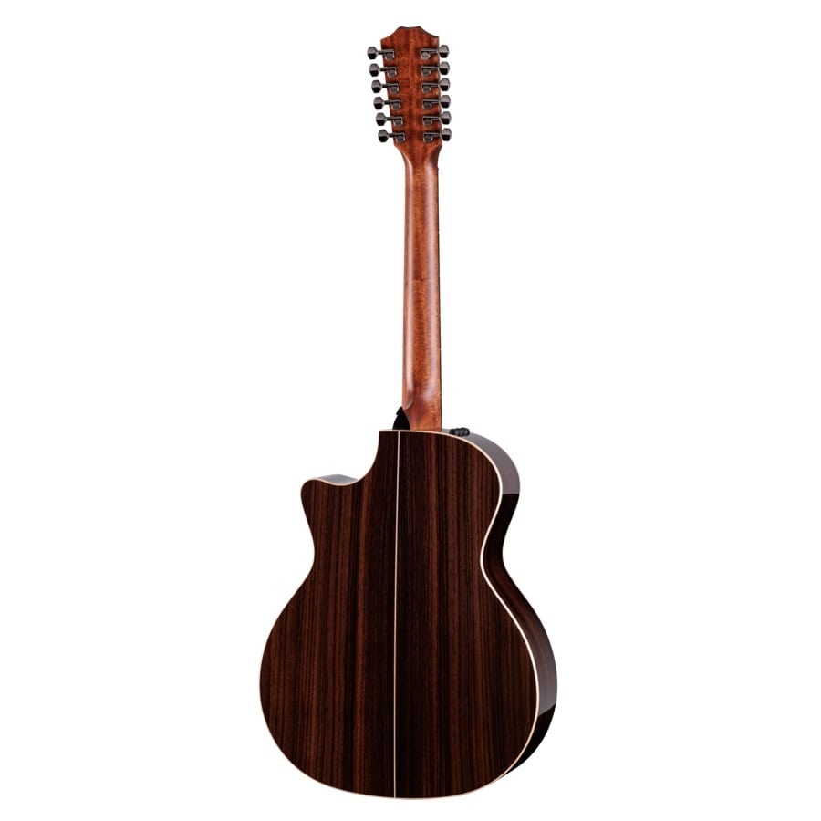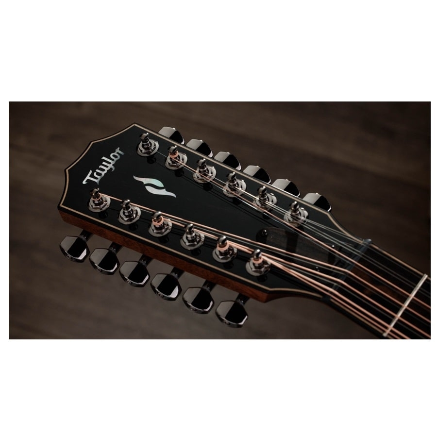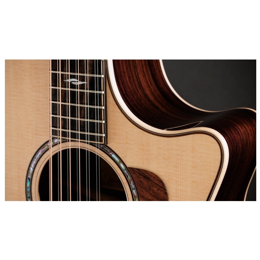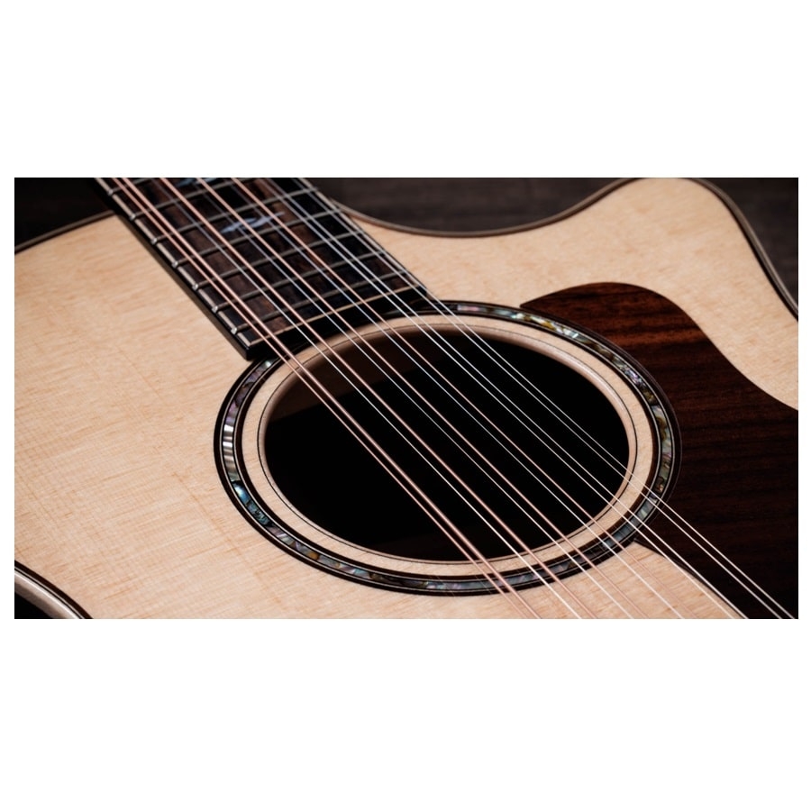 Die 854ce ist eine wunderschöne 12-saitige Gitarre. Ihr Resonanzkörper hat massive Palisander-Zargen und -Boden, die einen ausgewogenen und resonanten Sound bieten. Die Decke der Gitarre ist aus massiver Fichte gefertigt. Dies sorgt für einen warmen und klaren Sound. Der Hals der Gitarre ist aus Mahagoni gefertigt und das Griffbrett aus Ebenholz. Sie hat einen Grand-Auditorium-Korpus. Diese Form wurde 1994 von Taylor entwickelt und zählt zu den beliebtesten Formen des Herstellers. Der Grand-Auditorium-Korpus ist etwas kleiner als eine Dreadnought, aber etwas größer als ein Grand Concert. Sie ist auch die vielseitigste der drei Gitarren, denn Dreadnoughts eignen sich vor allem für Rhythmusgitarre und Grand Concerts für das Strumming. Die Grand Auditorium hingegen ist speziell für die Kombination aus beiden Instrumenten konzipiert. Außerdem ist die Gitarre mit einer ES2-Elektronik ausgestattet, sodass sie sich gut verstärken lässt, und sie wird mit einem Koffer geliefert.