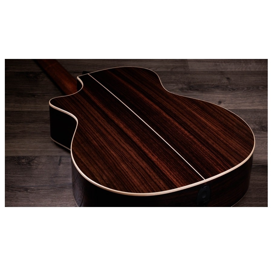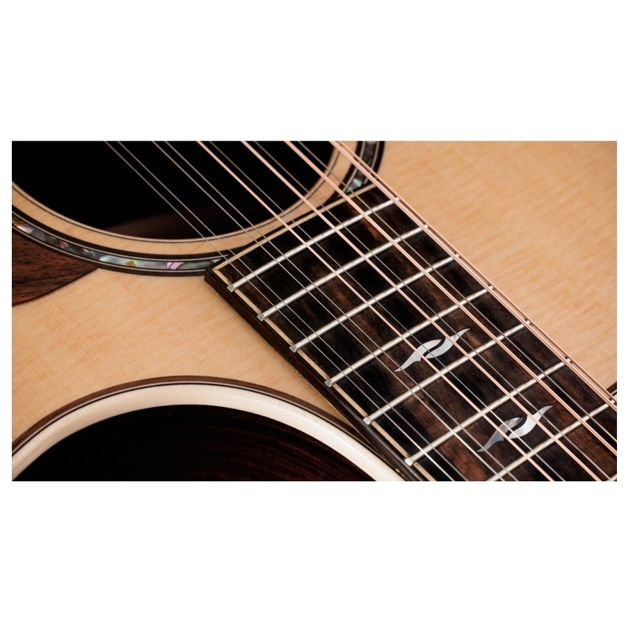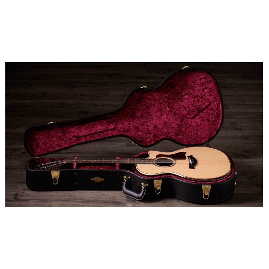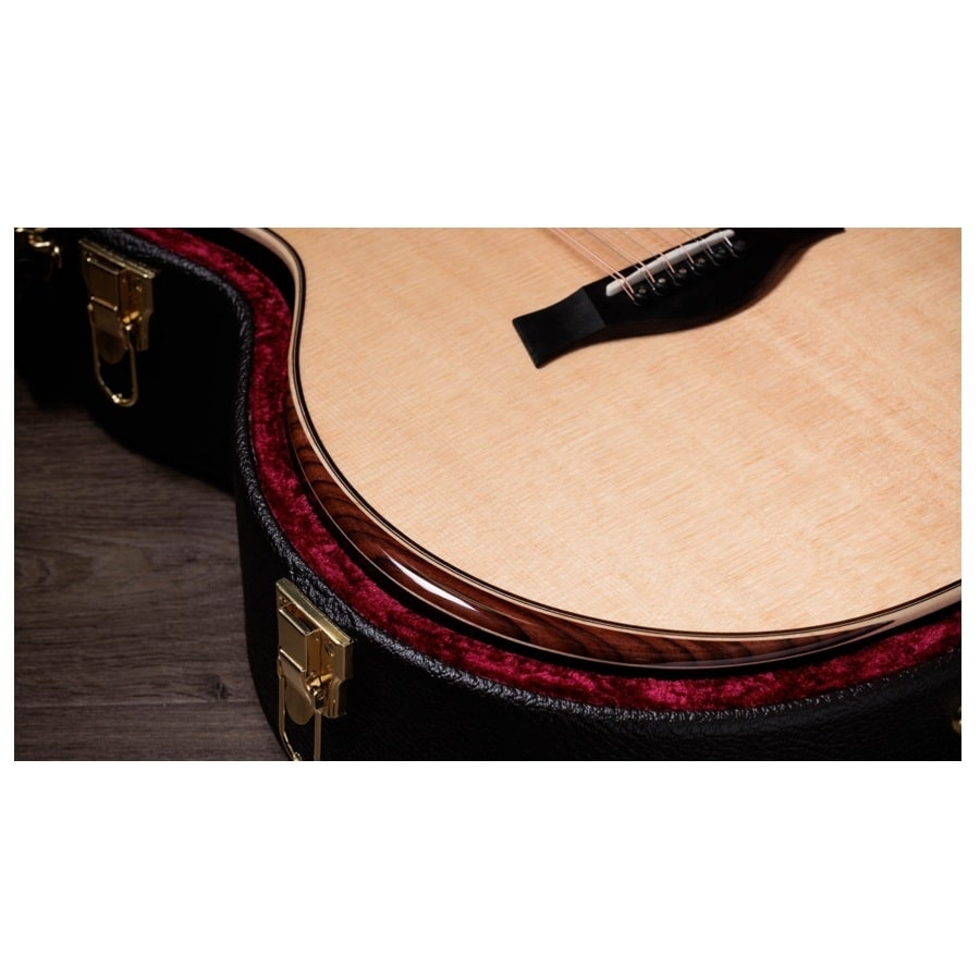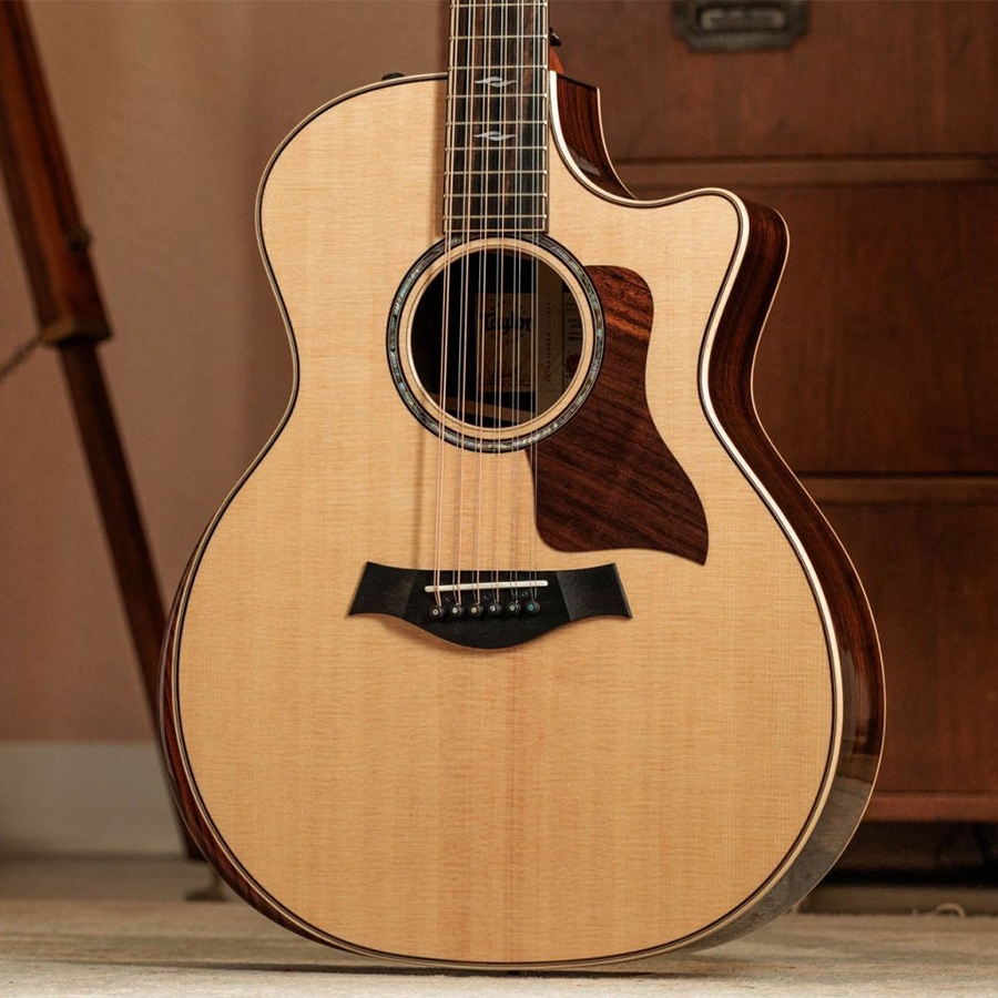 Die 854ce ist eine wunderschöne 12-saitige Gitarre. Ihr Resonanzkörper hat massive Palisander-Zargen und -Boden, die einen ausgewogenen und resonanten Sound bieten. Die Decke der Gitarre ist aus massiver Fichte gefertigt. Dies sorgt für einen warmen und klaren Sound. Der Hals der Gitarre ist aus Mahagoni gefertigt und das Griffbrett aus Ebenholz. Sie hat einen Grand-Auditorium-Korpus. Diese Form wurde 1994 von Taylor entwickelt und zählt zu den beliebtesten Formen des Herstellers. Der Grand-Auditorium-Korpus ist etwas kleiner als eine Dreadnought, aber etwas größer als ein Grand Concert. Sie ist auch die vielseitigste der drei Gitarren, denn Dreadnoughts eignen sich vor allem für Rhythmusgitarre und Grand Concerts für das Strumming. Die Grand Auditorium hingegen ist speziell für die Kombination aus beiden Instrumenten konzipiert. Außerdem ist die Gitarre mit einer ES2-Elektronik ausgestattet, sodass sie sich gut verstärken lässt, und sie wird mit einem Koffer geliefert.