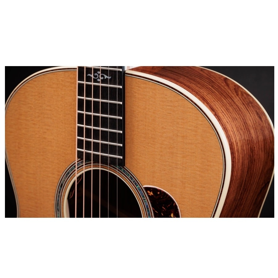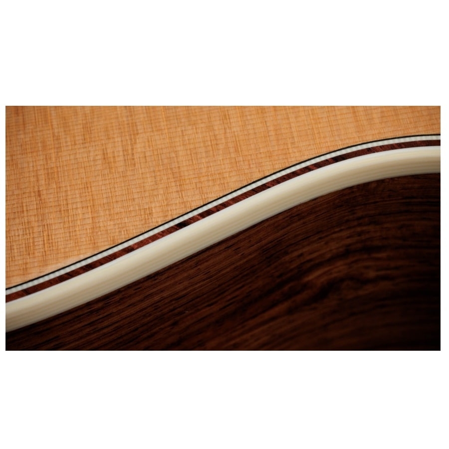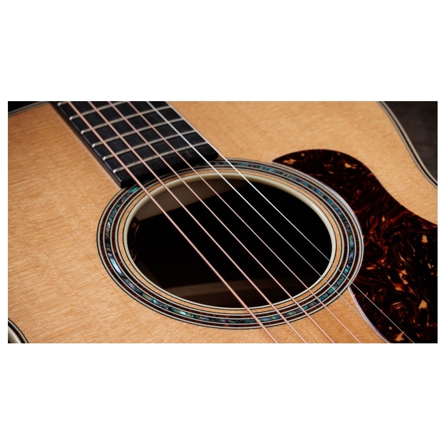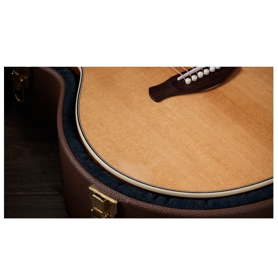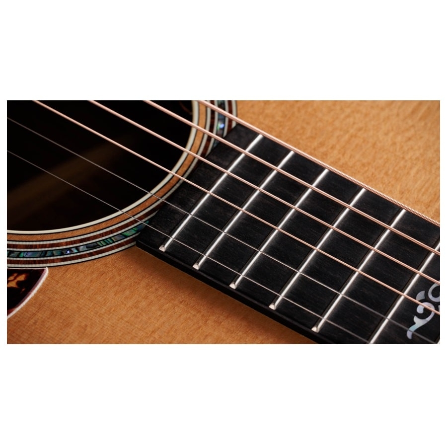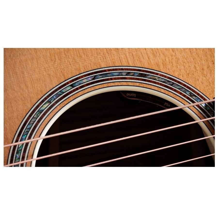 Die Gold Label 814e ist eine einzigartige Gitarre. Sie verfügt über eine massive Fichtendecke sowie einen massiven Boden und Zargen aus Honduras-Palisander. Diese Kombination erzeugt einen warmen und ausgewogenen Sound. Der Hals der Gitarre ist aus Mahagoni gefertigt, das Griffbrett aus Ebenholz. Darüber hinaus verfügt sie über eine Super-Auditorium-Form. Dies ist eine neuere Version von Taylors beliebter Grand-Auditorium-Form. Die Super Auditorium hat einen etwas längeren Resonanzkörper und einen breiteren Boden. Dadurch ähnelt die Gitarre einer Grand Auditorium, hat aber mehr Raum für Resonanz und erzeugt somit einen volleren und kraftvolleren Sound. Das macht die Gitarre sehr vielseitig, vor allem aber ideal als Zupfgitarre. Die Gitarre ist mit LR Baggs Element VTC Elektronik ausgestattet, sodass sie gut verstärkt werden kann, und wird mit einem Koffer geliefert.
