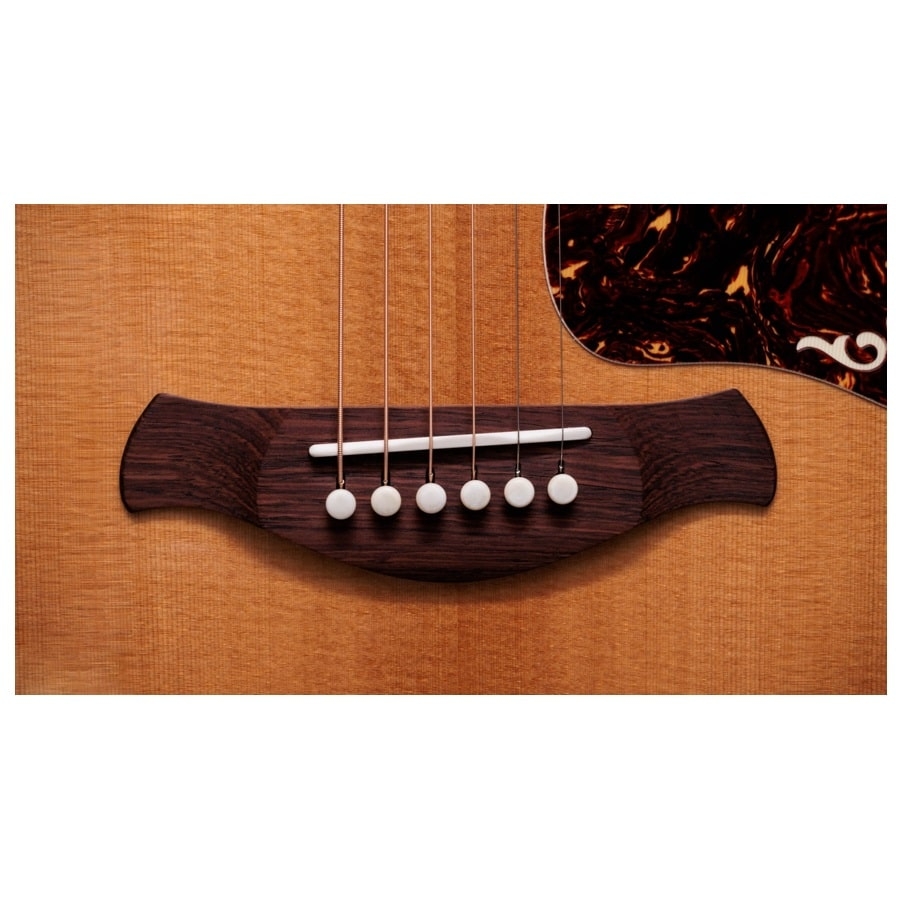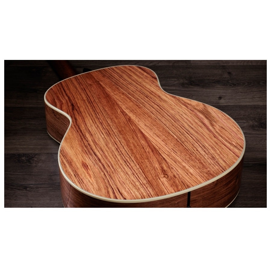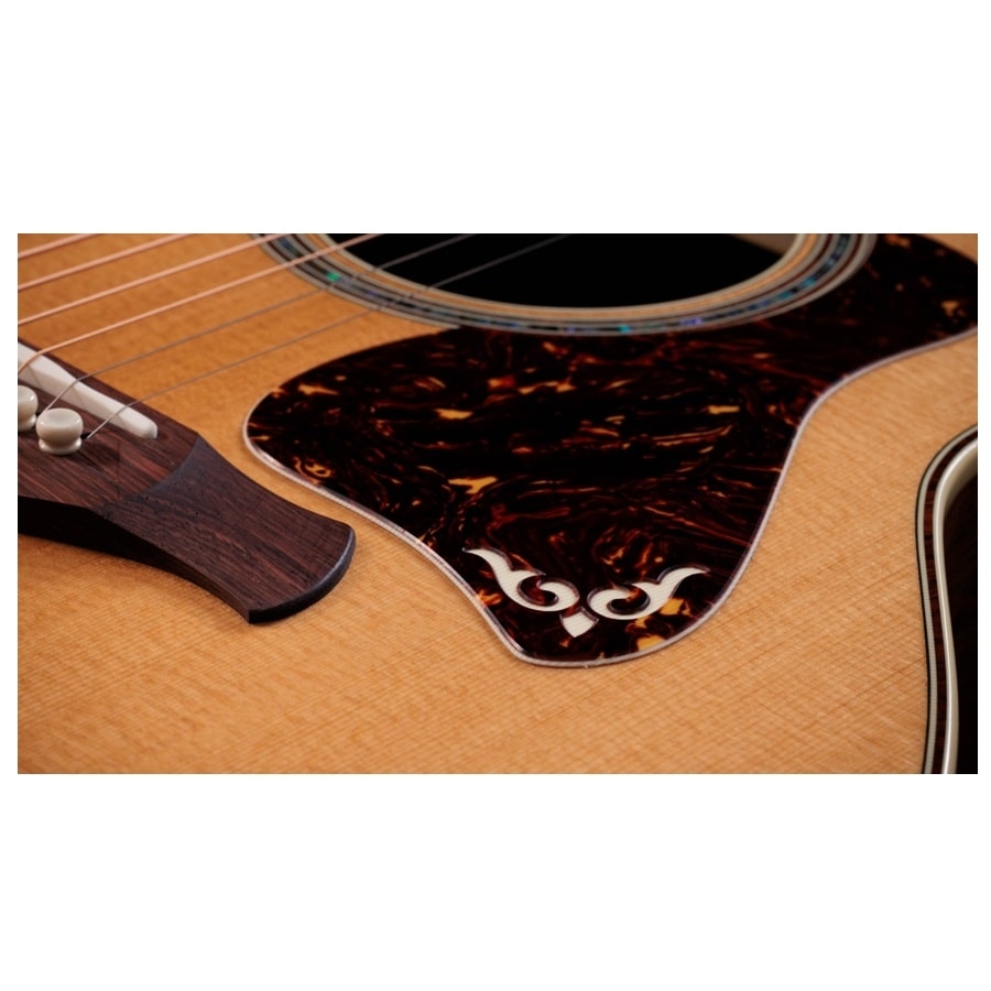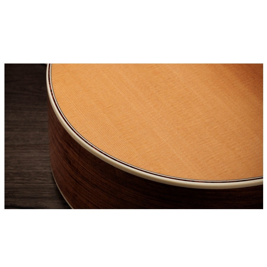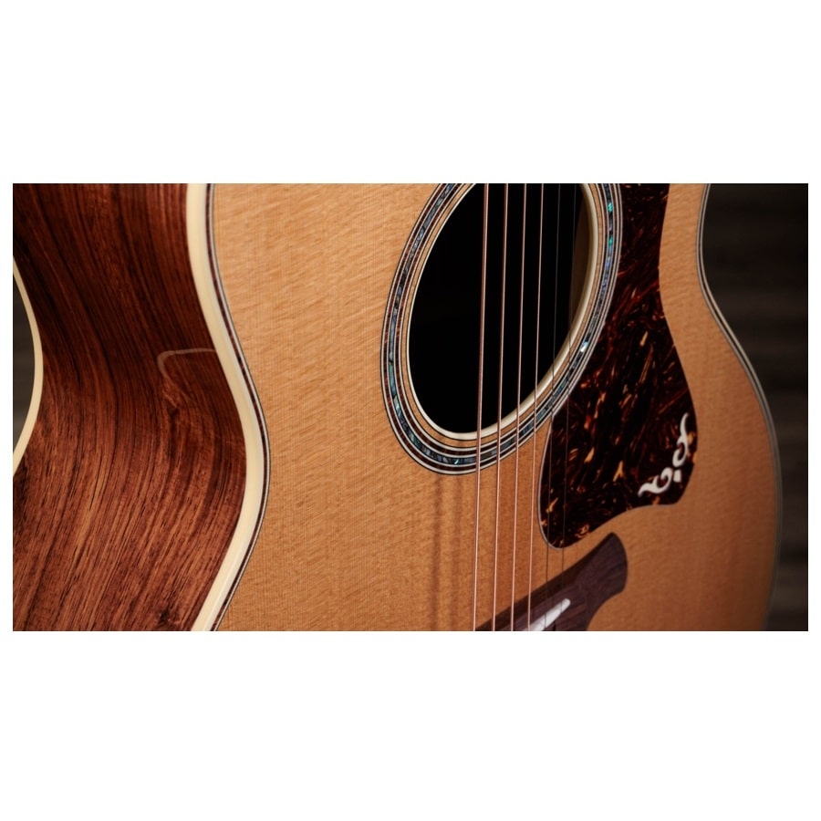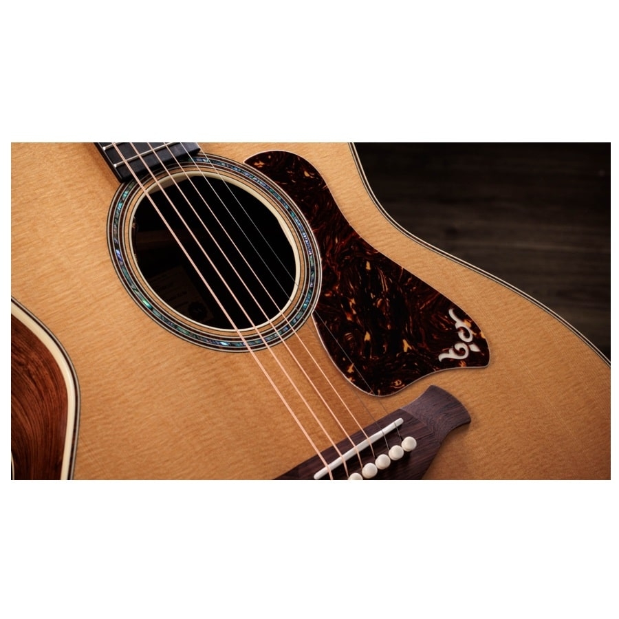 Die Gold Label 814e ist eine einzigartige Gitarre. Sie verfügt über eine massive Fichtendecke sowie einen massiven Boden und Zargen aus Honduras-Palisander. Diese Kombination erzeugt einen warmen und ausgewogenen Sound. Der Hals der Gitarre ist aus Mahagoni gefertigt, das Griffbrett aus Ebenholz. Darüber hinaus verfügt sie über eine Super-Auditorium-Form. Dies ist eine neuere Version von Taylors beliebter Grand-Auditorium-Form. Die Super Auditorium hat einen etwas längeren Resonanzkörper und einen breiteren Boden. Dadurch ähnelt die Gitarre einer Grand Auditorium, hat aber mehr Raum für Resonanz und erzeugt somit einen volleren und kraftvolleren Sound. Das macht die Gitarre sehr vielseitig, vor allem aber ideal als Zupfgitarre. Die Gitarre ist mit LR Baggs Element VTC Elektronik ausgestattet, sodass sie gut verstärkt werden kann, und wird mit einem Koffer geliefert.