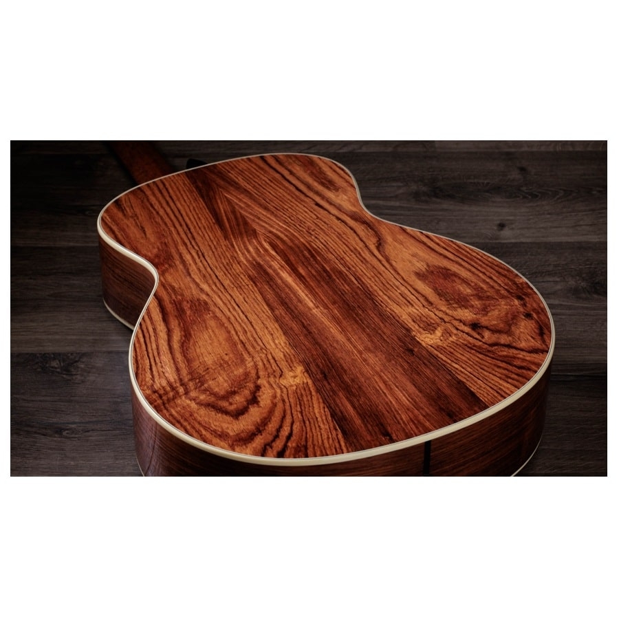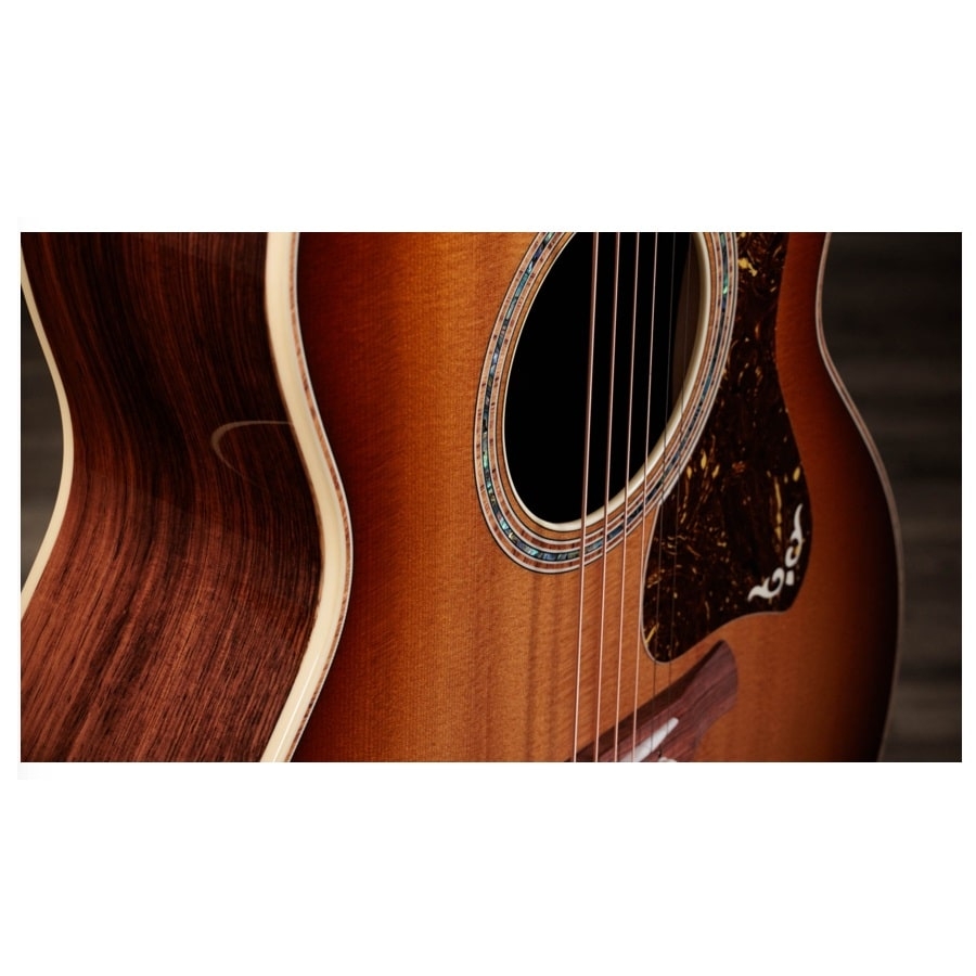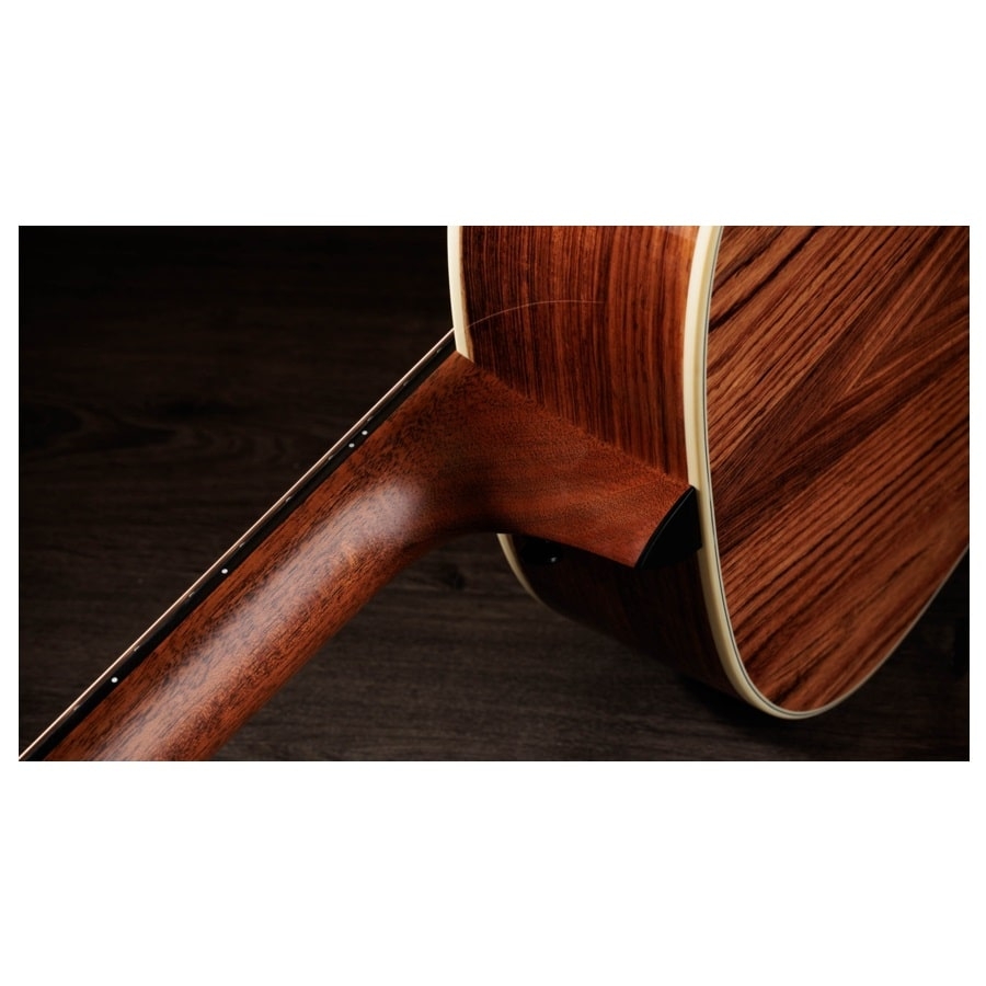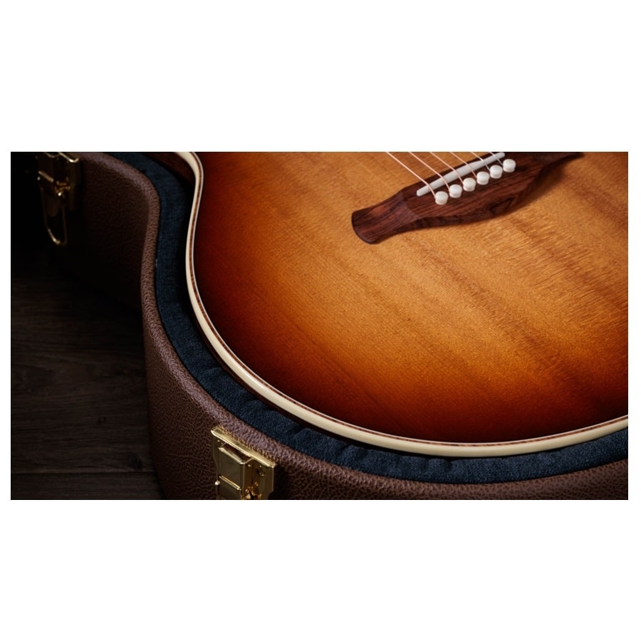Die Gold Label 814e ist eine einzigartige Gitarre. Sie verfügt über eine massive Fichtendecke sowie einen massiven Boden und Zargen aus Honduras-Palisander. Diese Kombination erzeugt einen warmen und ausgewogenen Sound. Der Hals der Gitarre ist aus Mahagoni gefertigt, das Griffbrett aus Ebenholz. Darüber hinaus verfügt sie über eine Super-Auditorium-Form. Dies ist eine neuere Version von Taylors beliebter Grand-Auditorium-Form. Die Super Auditorium hat einen etwas längeren Resonanzkörper und einen breiteren Boden. Dadurch ähnelt die Gitarre einer Grand Auditorium, hat aber mehr Raum für Resonanz und erzeugt somit einen volleren und kraftvolleren Klang. Das macht die Gitarre sehr vielseitig, vor allem aber ideal als Zupfgitarre. Darüber hinaus ist die Gitarre mit LR Baggs Element VTC Elektronik ausgestattet, sodass sie gut verstärkt werden kann. Im Lieferumfang ist außerdem ein Koffer enthalten.
