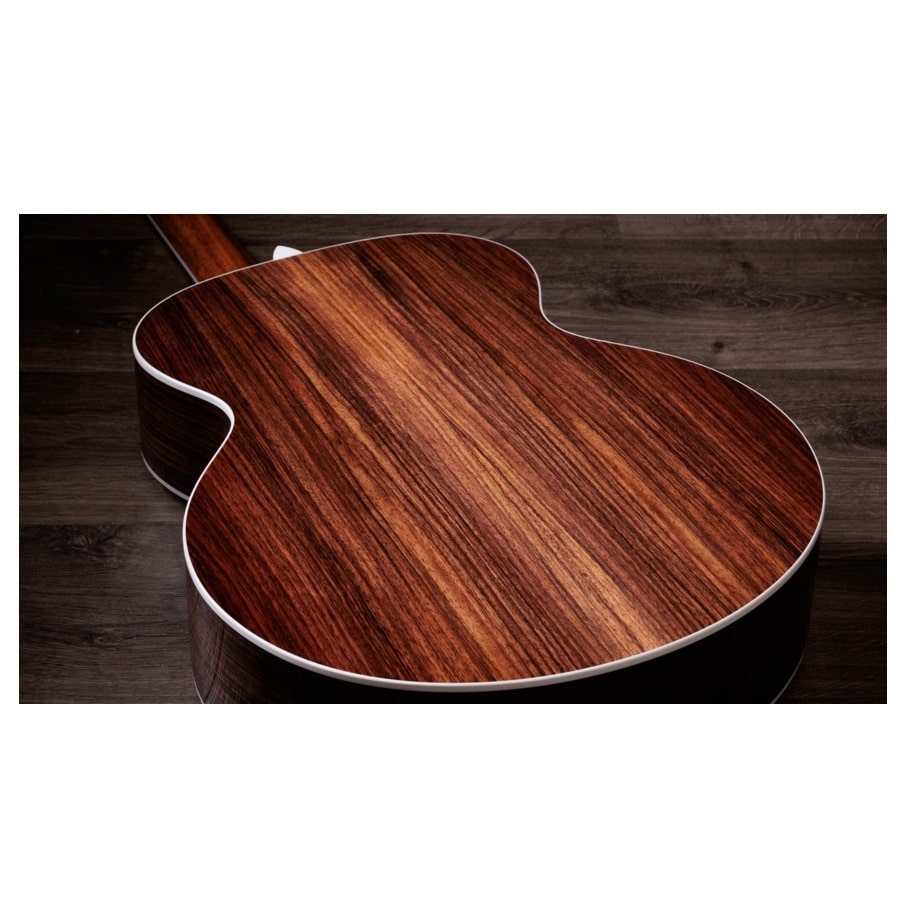 Die Legacy 855e ist eine einzigartige 12-saitige Gitarre. Sie verfügt über eine massive Fichtendecke sowie einen massiven Boden und Zargen aus Palisander. Diese Kombination erzeugt einen warmen und ausgewogenen Sound. Der Hals der Gitarre ist aus Mahagoni gefertigt, das Griffbrett aus Ebenholz. Sie hat eine Jumbo-Form. Dies ist die größte Gitarrenform auf dem Markt. Der große Resonanzkörper bietet zusätzlichen Raum für die Resonanz der Saiten, sodass ein tiefer und kraftvoller Klang entsteht. Darüber hinaus ist die Gitarre mit LR Baggs Element VTC-Elektronik ausgestattet, sodass sie gut verstärkt werden kann. Im Lieferumfang ist ein Koffer enthalten.