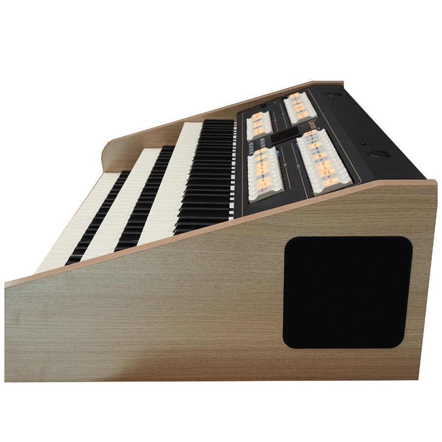 Das Cantorum Trio ist in Light Oak erhältlich und einschließlich einen Notenständer. Als optionales Zubehör benötigen Sie ein Stativ, auf das die Orgel gestellt werden kann. Hier können Sie einen Originale Unterstellung erwerben, bei dem ein 27- oder 30-Ton-Pedal unter das Stativ gelegt werden kann. Natürlich können Sie die Orgel auch auf einem Kreuzstativ oder einem Z-Stativ platzieren.