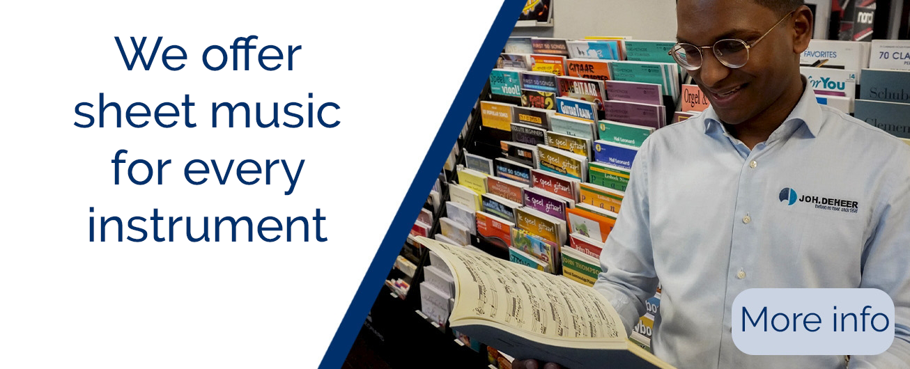 My name is Martijn Borsje and I have been working at Joh.deHeer since 2012. Here I work as a sales advisor of keyboard instruments, but I am also responsible for the sheet music. It's wonderful to delve into the world of sheet music, whether it's classical, popular, film, modern or sacred music, it doesn't matter! Are you looking for a Bach Prelude, a Mozart Sonata, a chorale arrangement for organ, a Disney song for piano? We have sheet music for all instruments. If you can't play an instrument yet, we also have many different teaching methods to help you master it! If you cannot find a book or have a question, please send an email to martijn@johdeheer.nl and I will find it out for you!