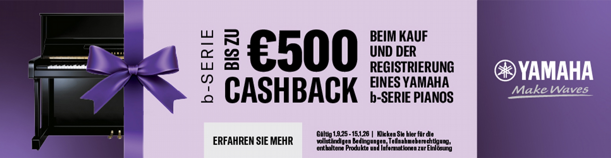 Yamaha bietet eine attraktive Cashback-Aktion: Beim Kauf ausgewählter Instrumente erhalten Sie bis zu 70 € zurück. So wird der Einstieg in ein neues Instrument besonders günstig. Ideal, wenn Sie mit dem Musizieren beginnen, Ihre Fähigkeiten verbessern oder auf ein anderes Modell umsteigen möchten.